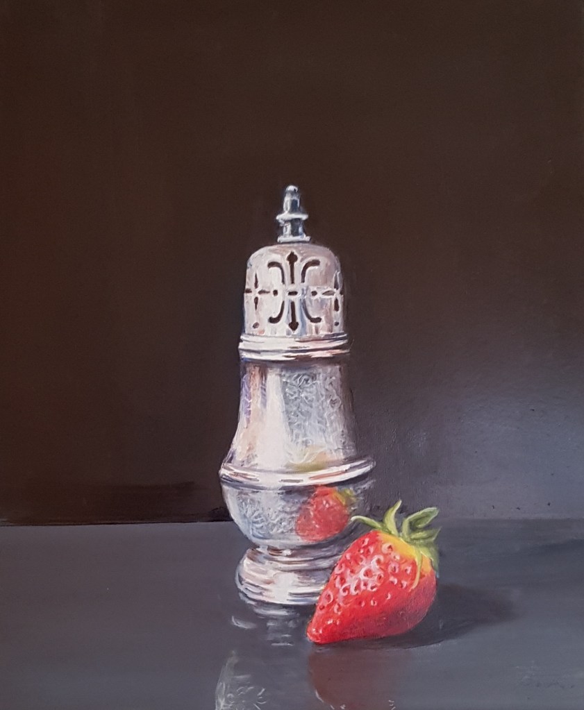 I have used it in my latest painting of a silver chocolate pot in the reflected light. Baby steps. It’s subtle I know!