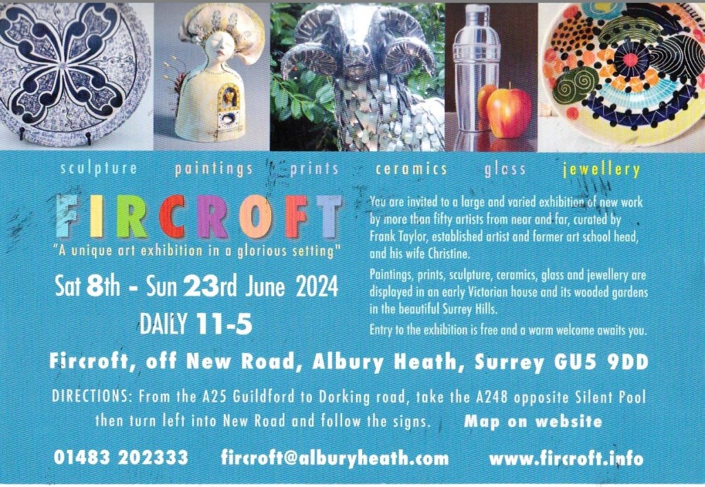 Fircroft Exhibition is in June from 8th-23rd. An amazing collection of artists, sculptors ceramicists and jewellers at Fircroft Albury Heath.